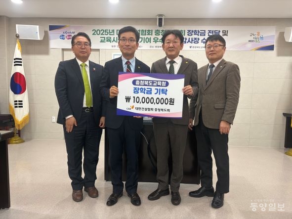 대한건설협회 충북도회(회장 유정선)는 지난 24일 충북교육청을 방문해 장학금 1000만원을 기탁했다.